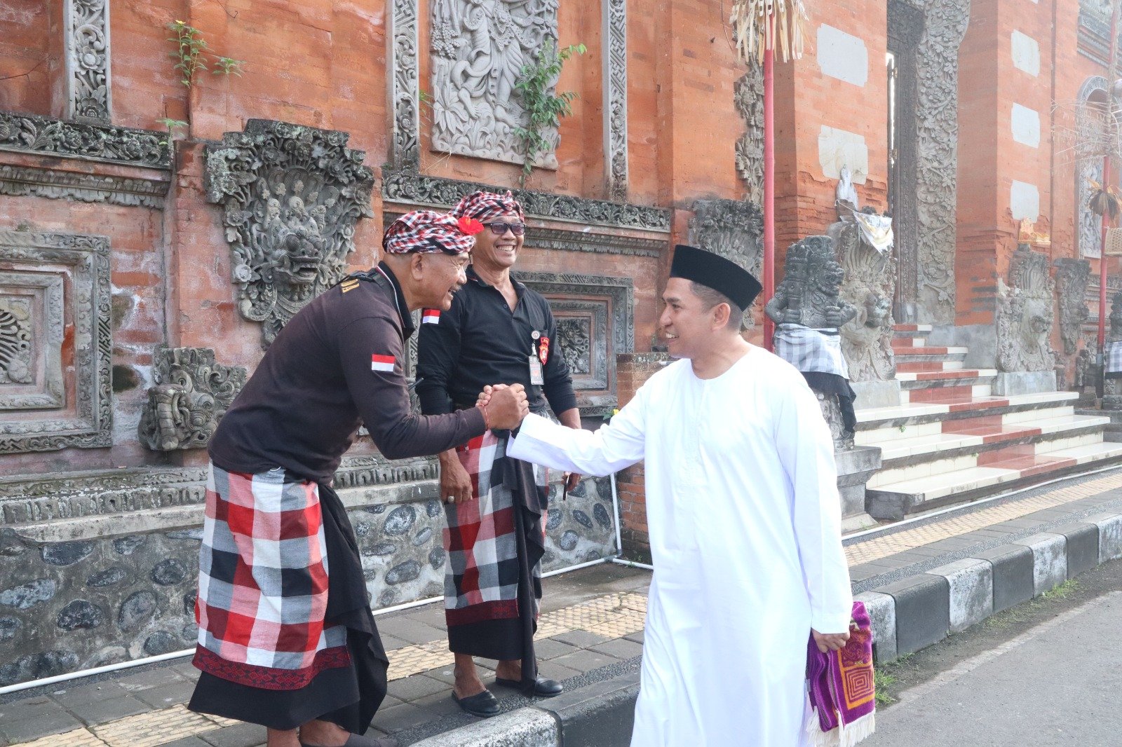 “Umat Muslim dengan Hindu khususnya di Klungkung tidak ada sekat, hanya cara sembahyang saja yang berbeda. Karena untuk kegiatan adat dan kegiatan kemanusiaan saling hadir dan bergotong royong bersama,” ujar Koordinator Pecalang Desa Adat Semarapura, Putu Yudi Pasek Kusuma. (DKK)