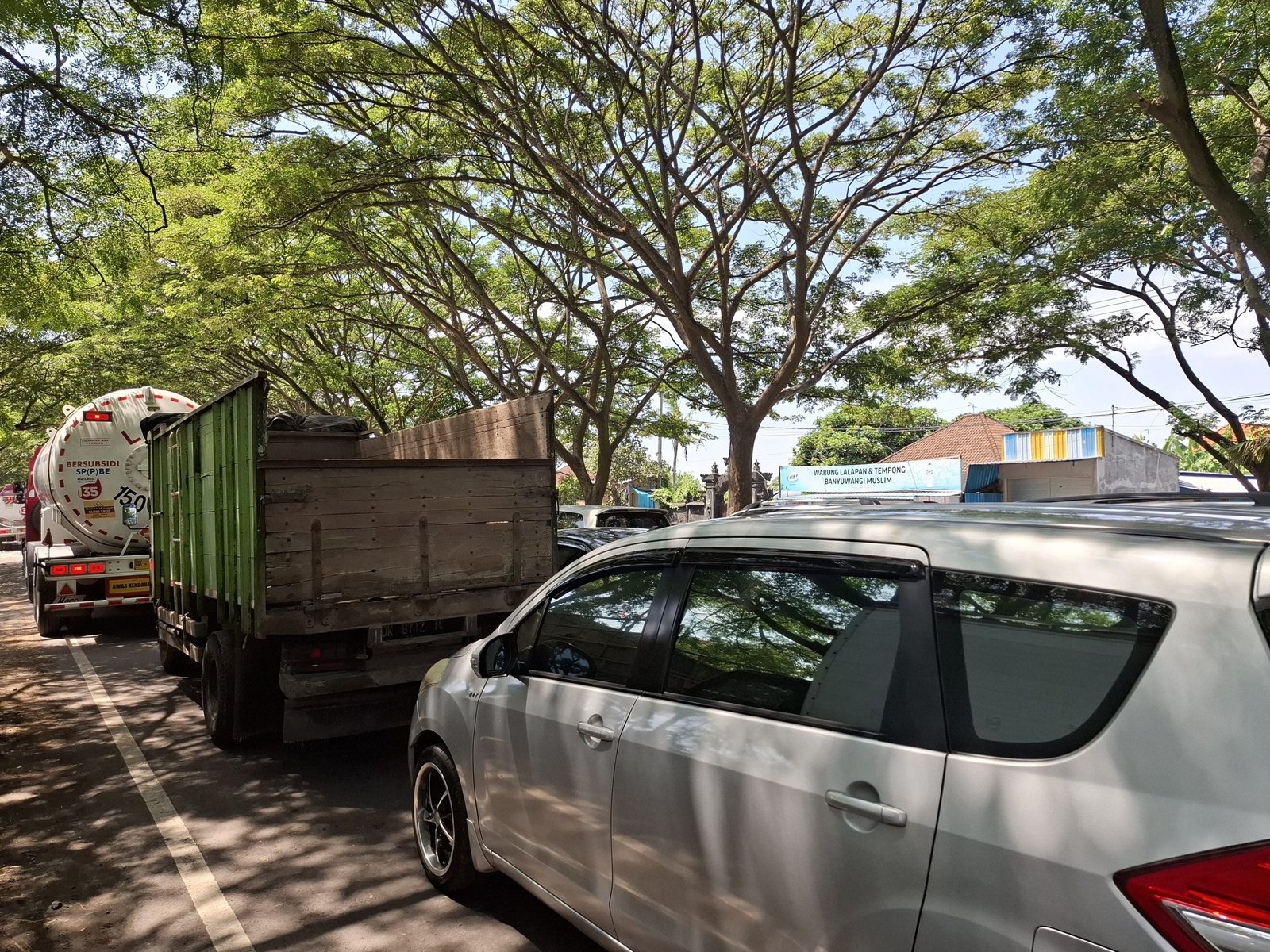 Kendaraan mengular sanpai sepanjang sekitar 2 kilometer.