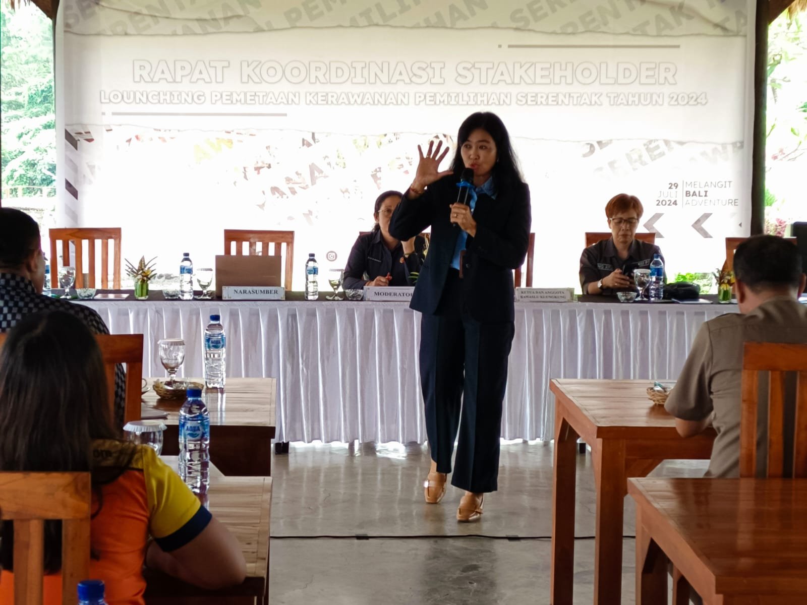 Bali Terkini – Bawaslu Kabupaten Klungkung melaksanakan Rapat Koordinasi Stakeholder dan Lounching Pemetaan Kerawanan Pemilih Serentak Tahun 2024 di Melangit Bali Adventure, Senin (29/7/2024). Dalam acara tersebut Dr. Ni Wayan Widhiasthini, S.Sos., M.Si. sebagai pemateri pertama menyampaikan bahwa pemilih disabilitas sangat rawan dipengaruhi oleh pihak lain sehingga tidak dapat memberikan hak suaranya atau pun haknya diambil alih pihak lain.