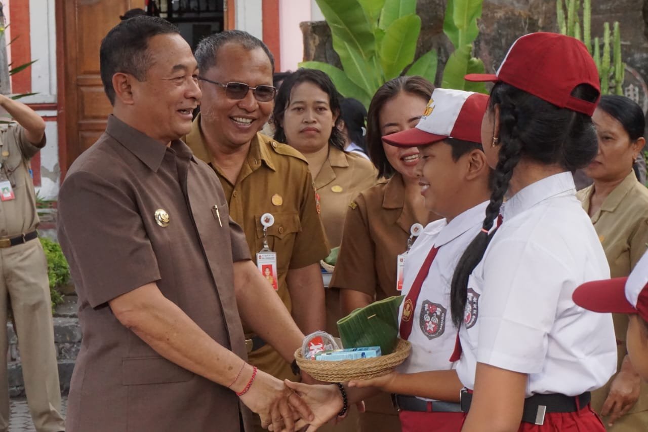 Dalam kesempatan tersebut, Bupati Gede Dana juga menyerahkan secara simbolis 336 paket B2SA kepada siswa SD N 4 Subagan.