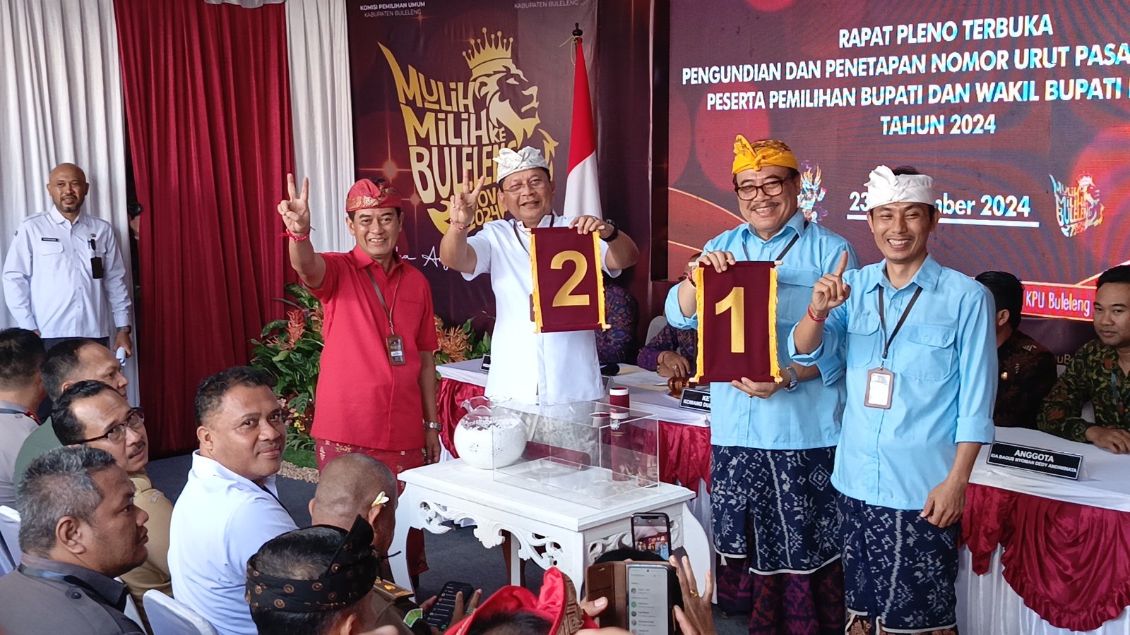 Ketua KPU Buleleng, Komang Dudhi Udiyana mengatakan setelah ditetapkan sebagai pasangan calon, hari ini dilaksanakan pengambilan nomer urut untuk masing-masing pasangan.