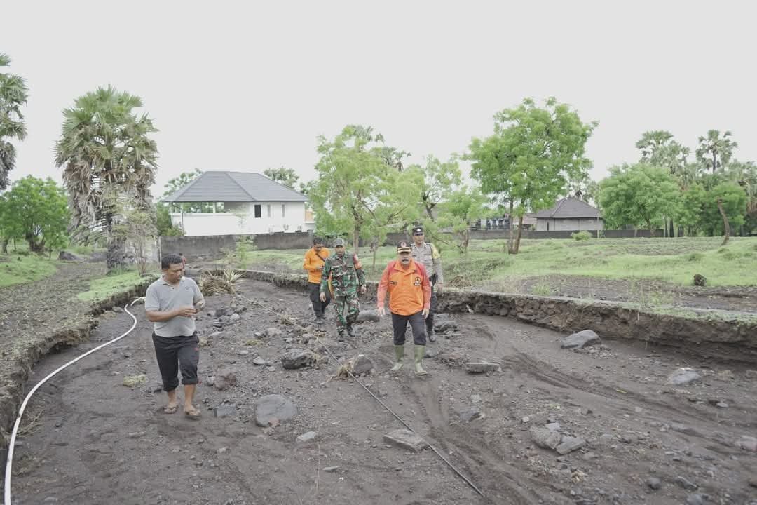 Sekretaris Daerah Kabupaten Karangasem, Ir. I Ketut Sedana Merta meninjau lokasi banjir dan tanah longsor di Pasar Rubaya, Desa Tulamben, Kecamatan Kubu, pada Jumat (13/12/2024).