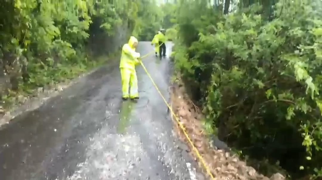 Hujan deras yang mengguyur membuat sejumlah jalan tergenang dan bahkan menyebabkan beberapa bagian jalan amblas akibat tergerus aliran air.