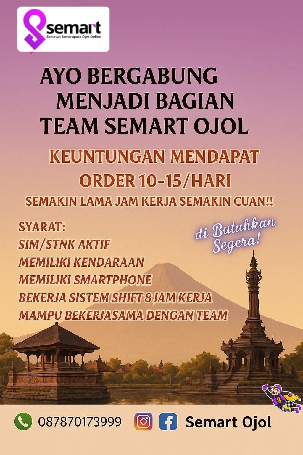 Bali Terkini- Layanan transportasi online lokal, Semart Ojol (Semeton Semarapura Ojek Online), kembali membuka peluang kerja bagi masyarakat yang ingin bergabung sebagai mitra driver.