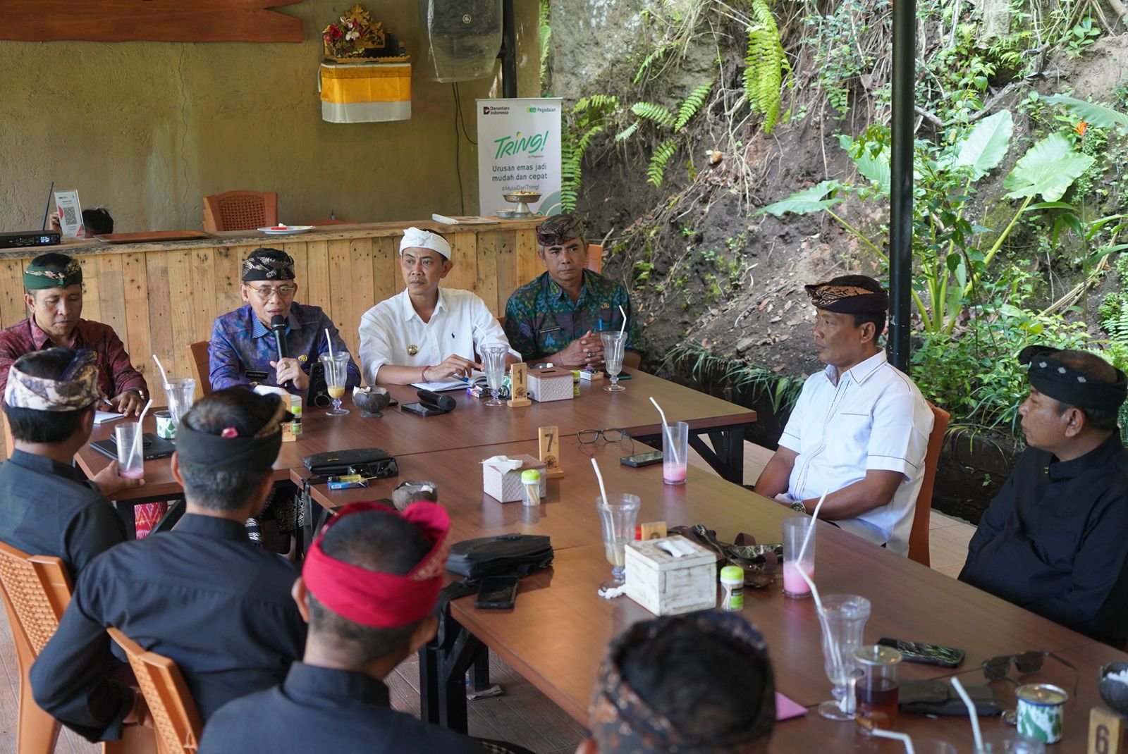 Klungkung, Bali Terkini – Bupati Klungkung, I Made Satria bersama Wakil Bupati Klungkung, Tjokorda Gde Surya Putra menghadiri Pertemuan Forum Perbekel se-Kecamatan Banjarangkan di Angkringan The Beji, Desa Banjarangkan, Kamis (16/10).