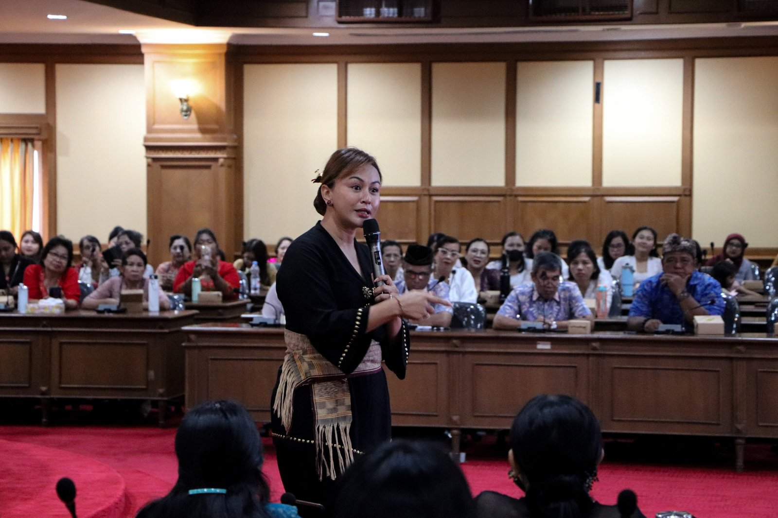 Ketua Gabungan Organisasi Wanita (GOW) Kabupaten Badung Nyonya Yunita Alit Sucipta menghadiri sekaligus menjadi narasumber pada acara yang digelar di Ruang Madya Gosana, Kantor DPRD Kabupaten Badung.