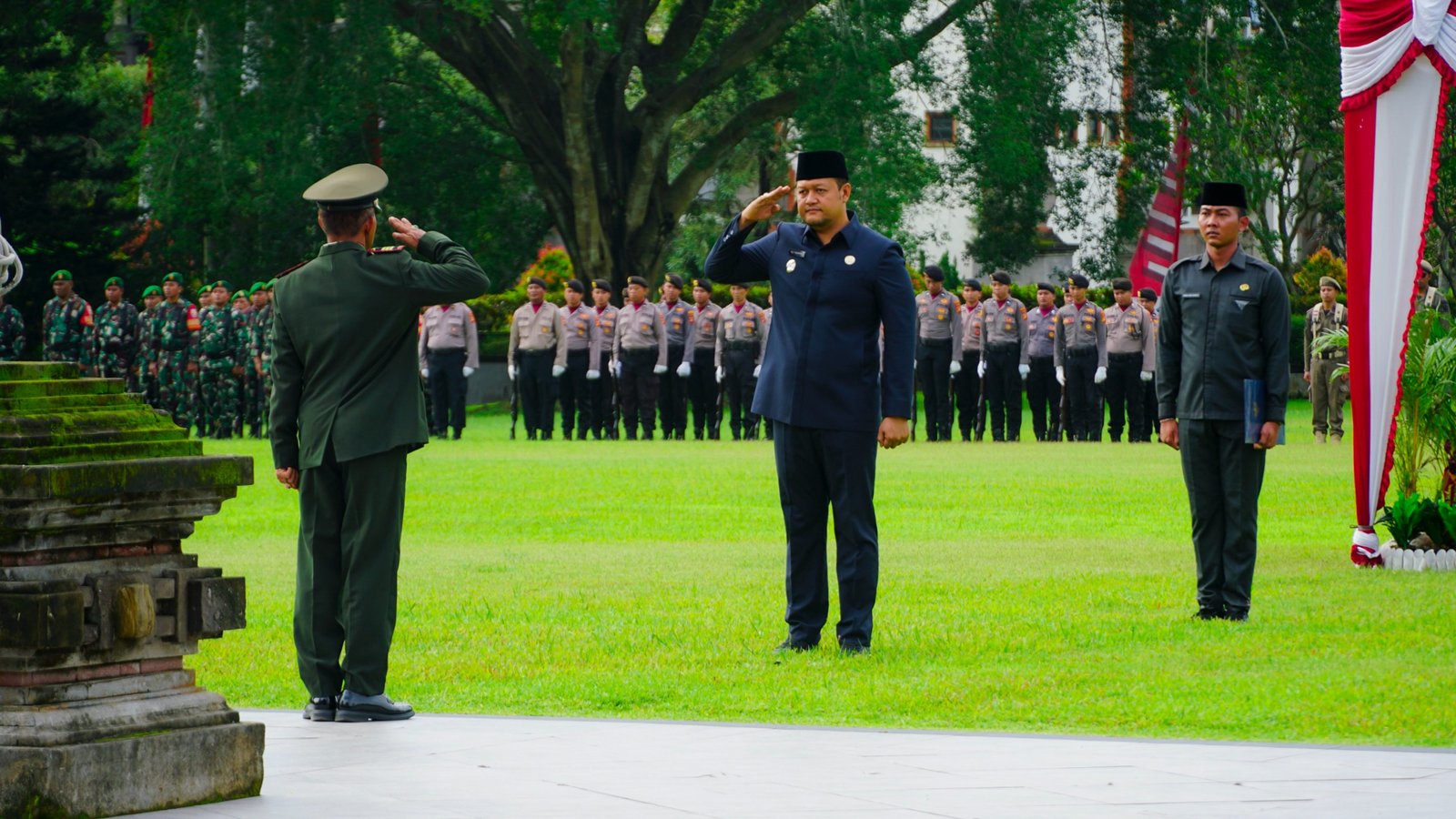 Badung, Bali Terkini – Pemerintah Kabupaten Badung menggelar apel Peringatan Hari Pahlawan di Lapangan Mangupraja Mandala, Puspem Badung, Senin (10/11). Selaku Inspektur Upacara, Wakil Bupati Badung Bagus Alit Sucipta. Upacara diikuti Forkopimda Badung, Pimpinan dan Anggota DPRD Badung, Sekda Badung IB. Surya Suamba, Pimpinan Perangkat Daerah, TNI/Polri, Legiun Veteran Republik Indonesia, ASN dan para Siswa.